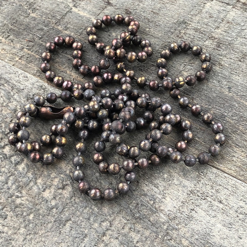 4mm Large Ball Chain Necklace – Antiqued Solid Brass with End Connector, Custom Length