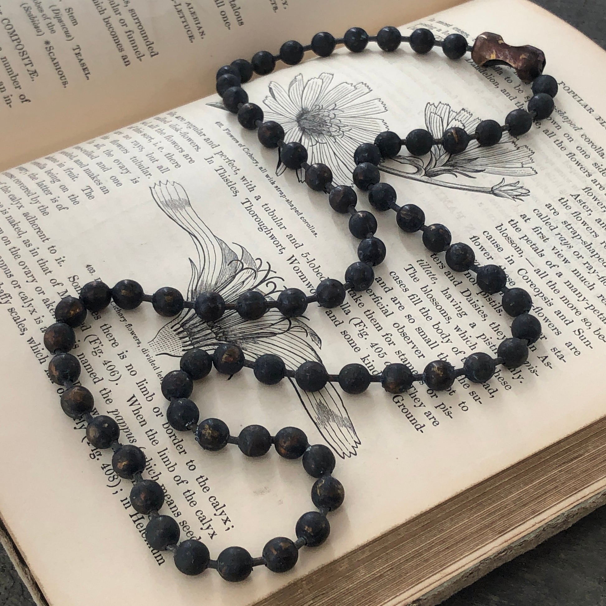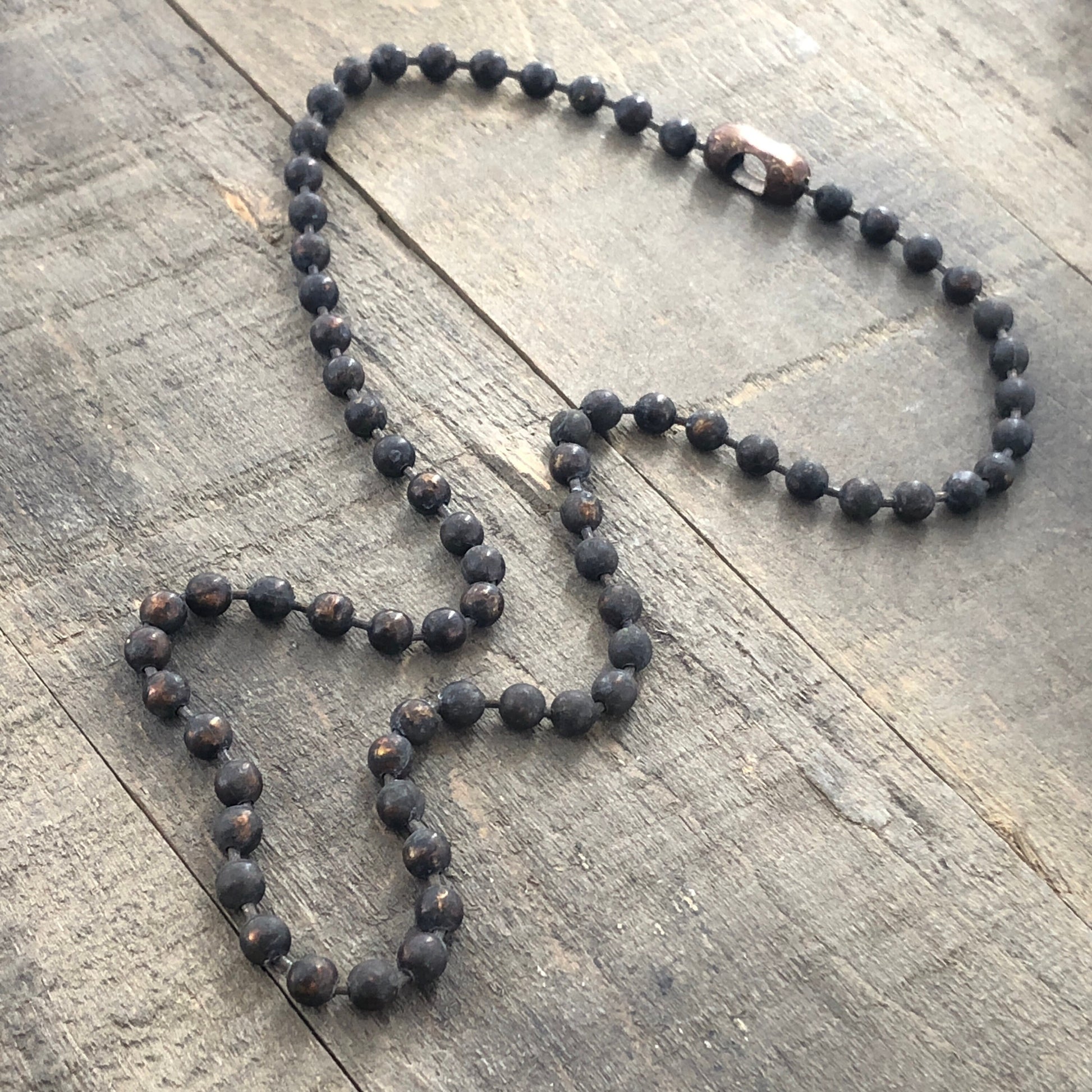 Bold and substantial, this 6mm solid brass ball chain necklace features oversized beads and a deep, hand-applied antique patina. Each chain is oxidized individually, creating a unique finish that ranges naturally from golden brass to dark brown.
