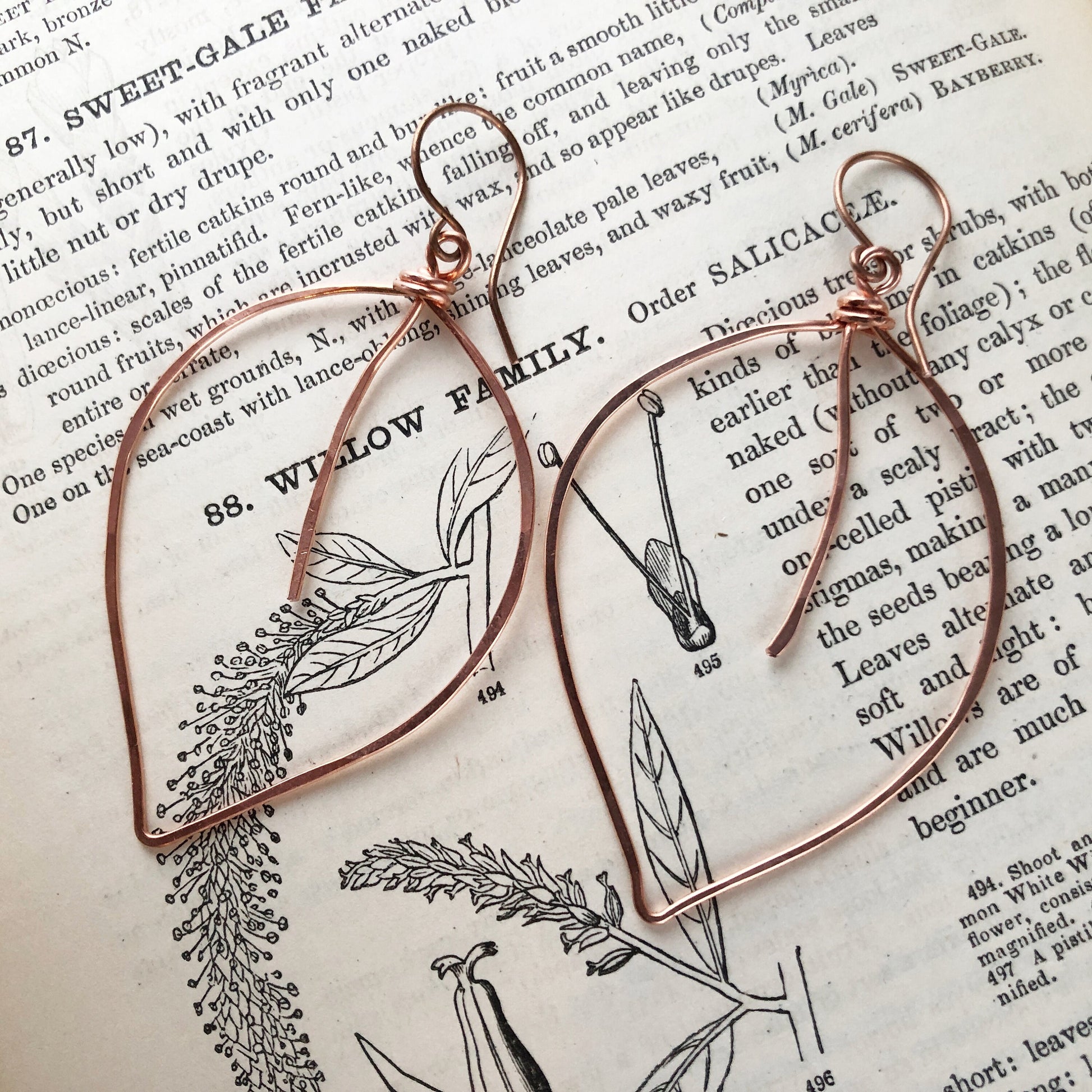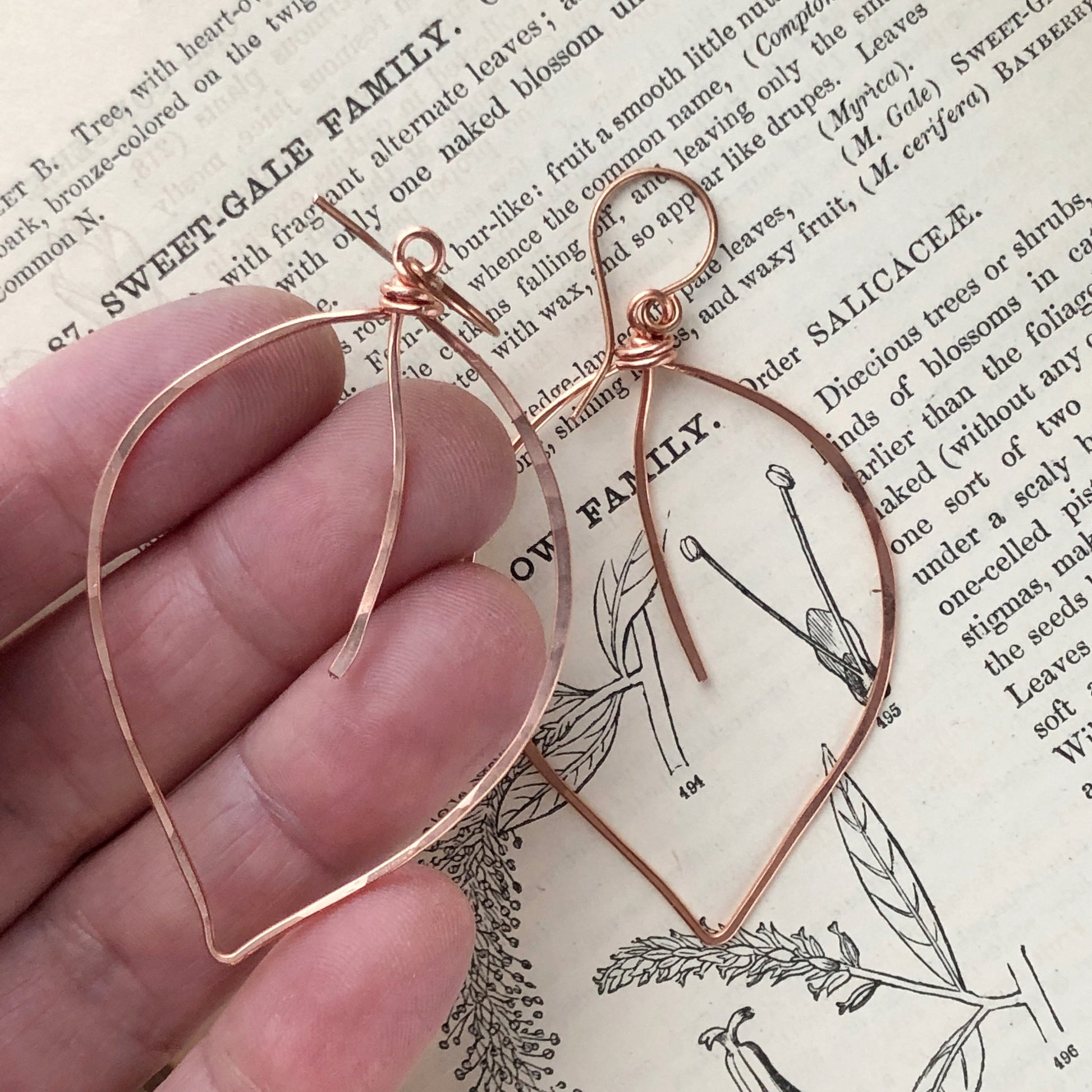 Copper Leaf Earrings – Handmade Large Wirework Hoops, Lightweight Nature-Inspired Dangles