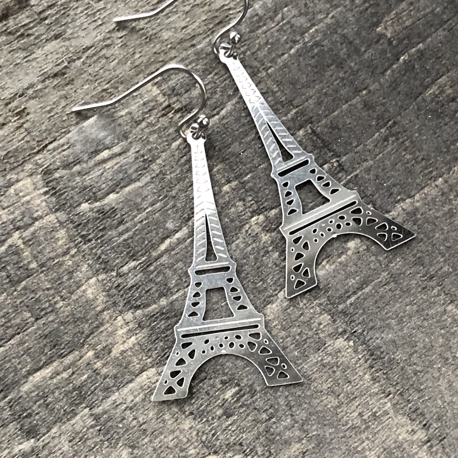 Eiffel Tower Earrings – Stainless Steel, French Hook, Lightweight