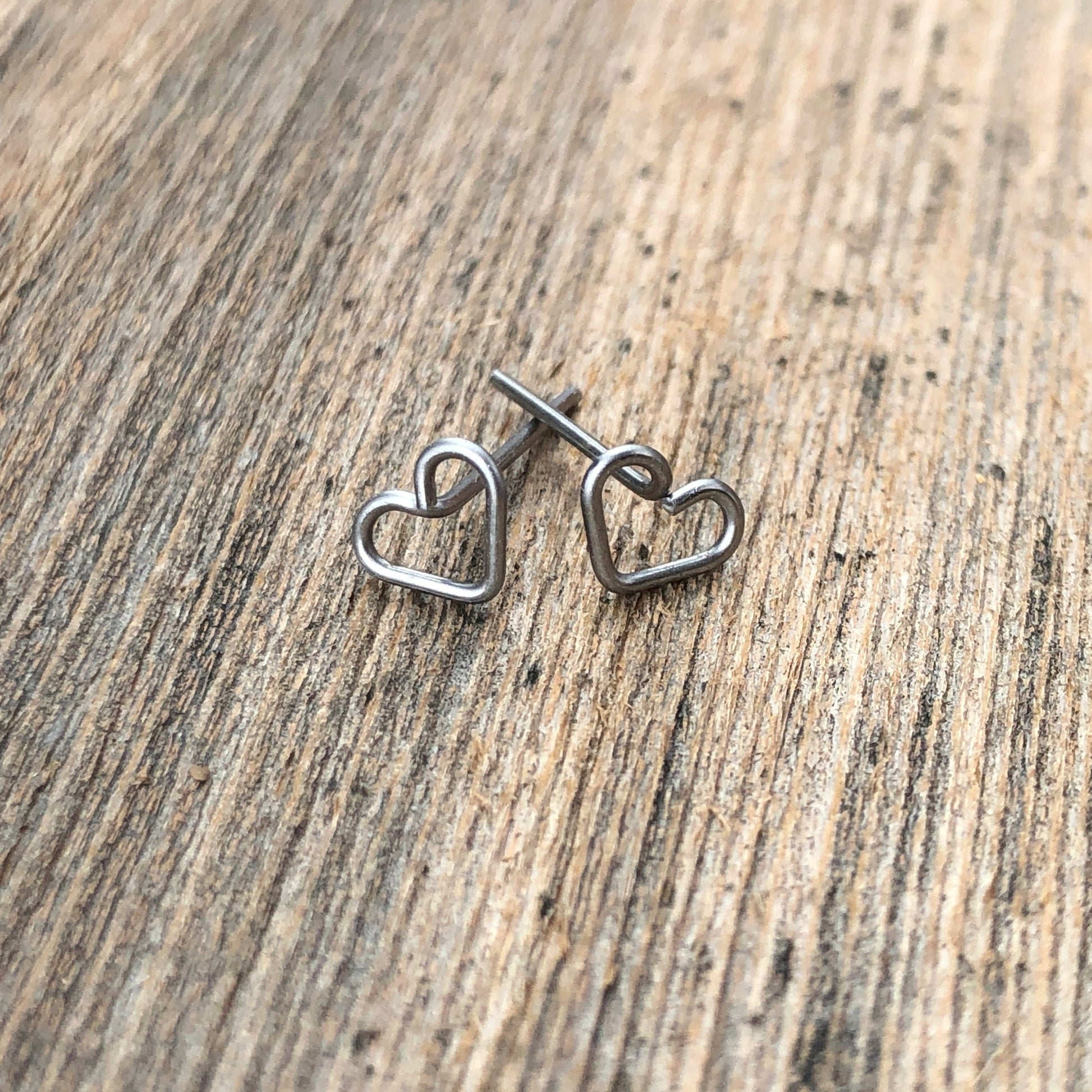 Tiny stainless steel studs. These are handmade, so expect slight variation from piece to piece. Stud ends are filed smooth for comfort. Comes with clear silicone stoppers.