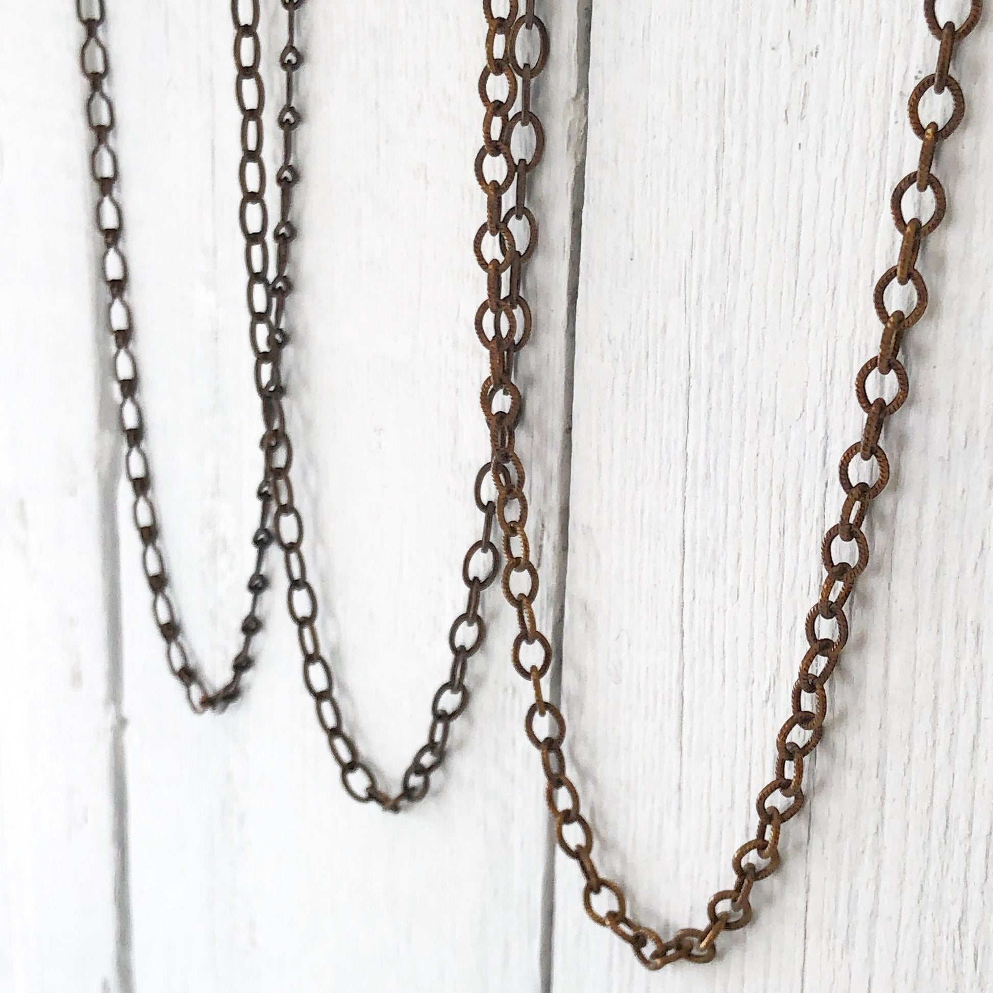 Antiqued Solid Brass Necklace Chain – Adjustable Custom Cable Style with Artisan Clasp