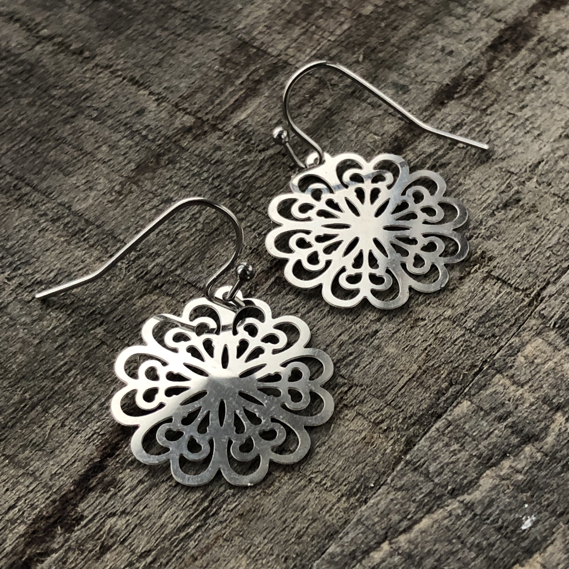 Round Floral Filigree Earrings, Grandma-chic Snowflake-like Doily Inspired