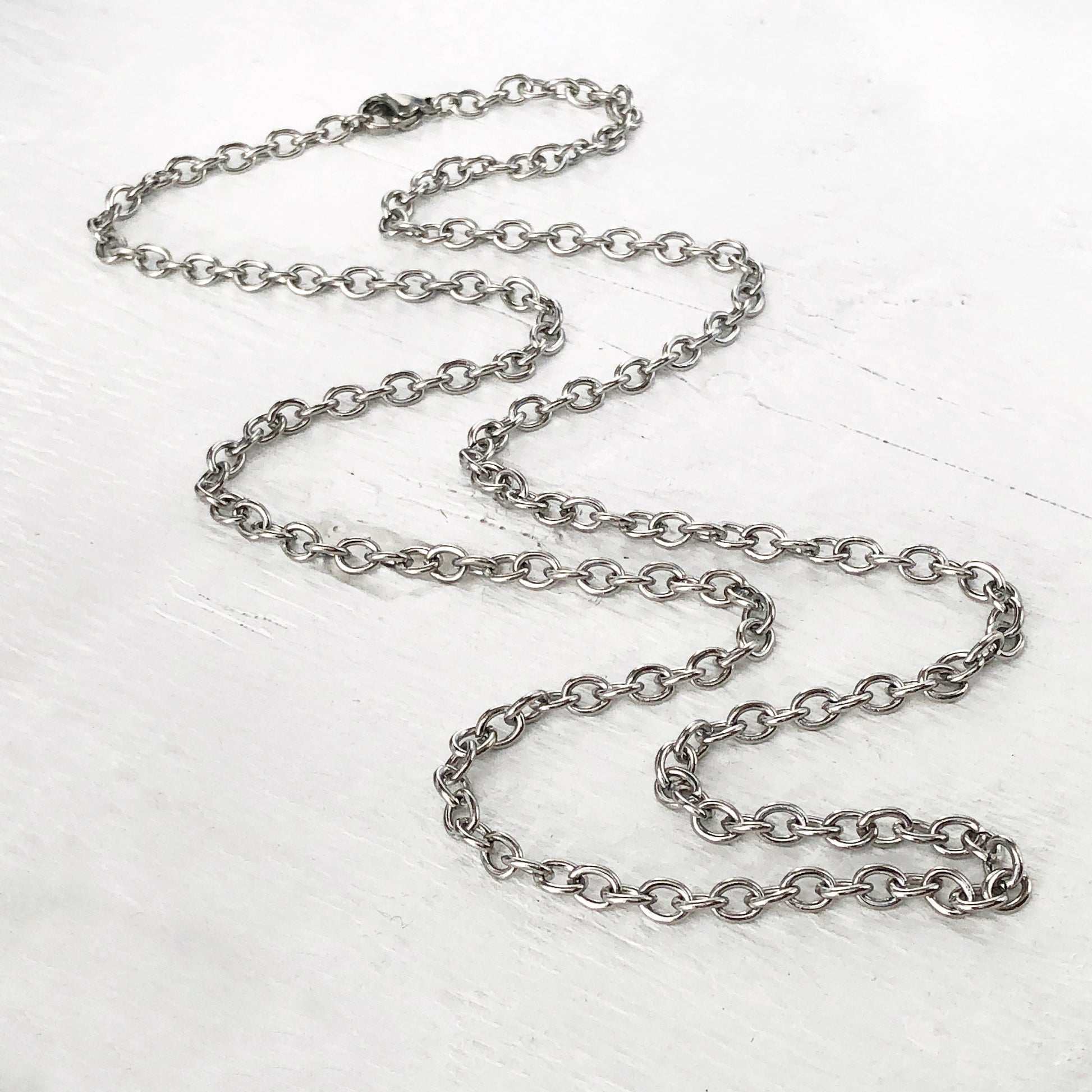 Stainless Steel Matinee Cable Chain Necklace with Lobster Clasp