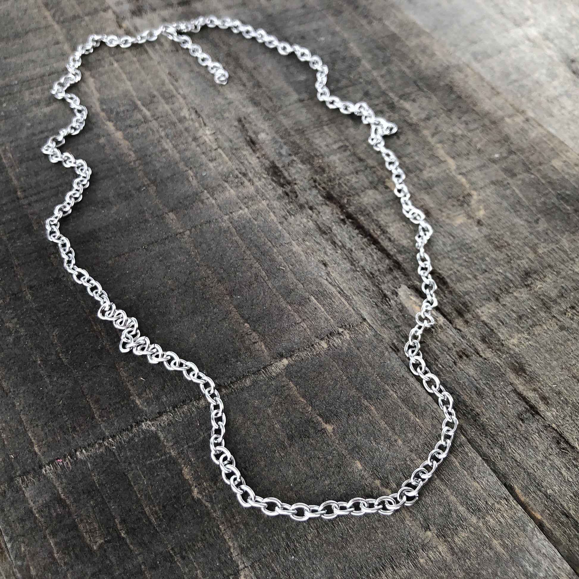 A sleek, shiny stainless steel cable chain that’s versatile enough for everyday wear or for pairing with your favorite pendant. At 23” (59 cm), this matinee length chain sits just below the collarbone and complements most necklines.