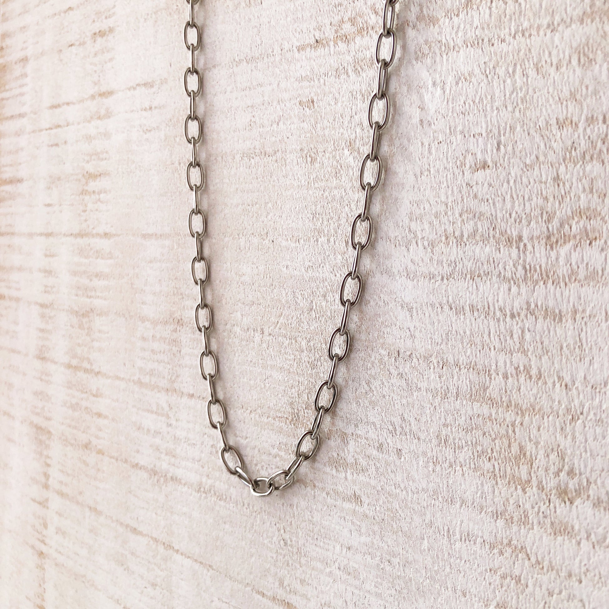 Stainless steel is a beautiful alternative to silver or silver-plated chains. It resists tarnish, won’t fade like plated “mystery metals,” and its durability ensures long-lasting wear.