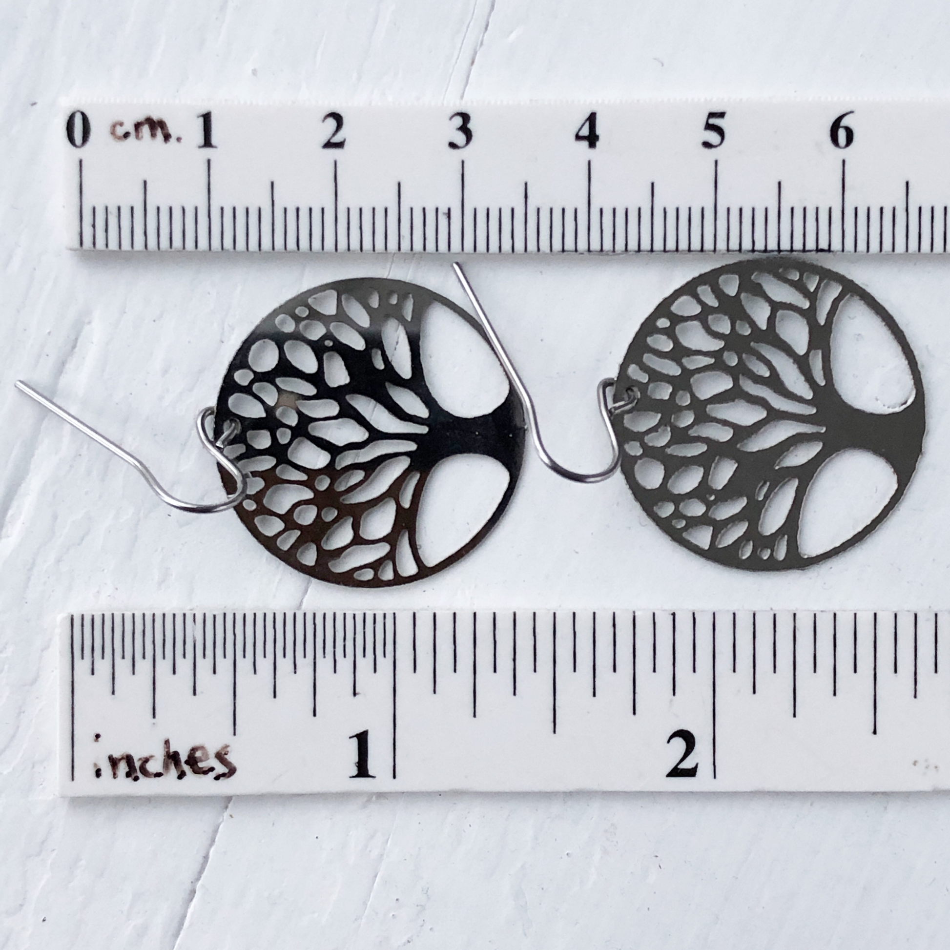 Tree of Life Filigree Earrings with French hooks, Stainless Steel